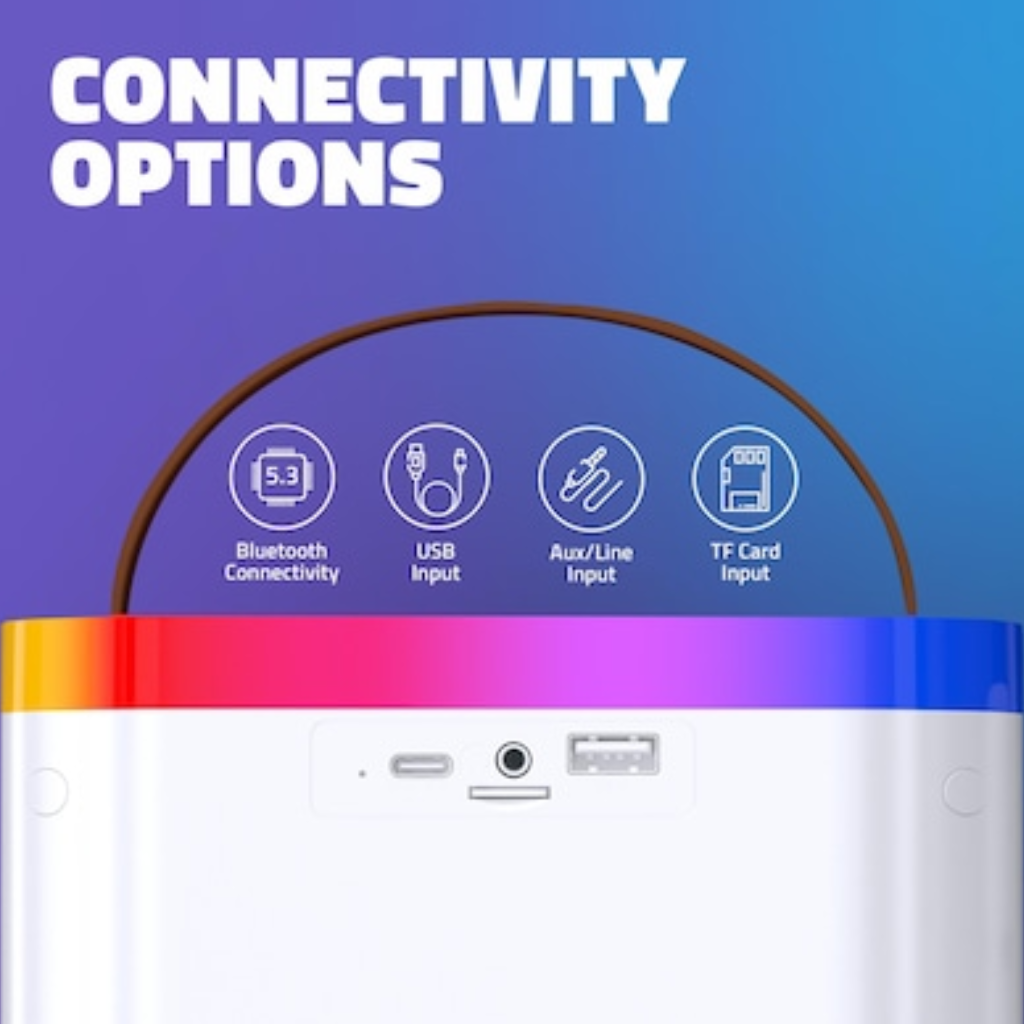 With Bluetooth connection, you can enjoy uninterrupted wireless streaming from smartphones, laptops and tablets. The SoundMax 600 Artis White Speaker has multiple input options including USB, AUX, TF card and FM radio, which ensures versatile playback. Designed with a smooth white body and LED display, it improves your home decoration and provides high quality audio. A remote control has been included for operating effortlessly and its built-in rechargeable battery allows chronic music playback.