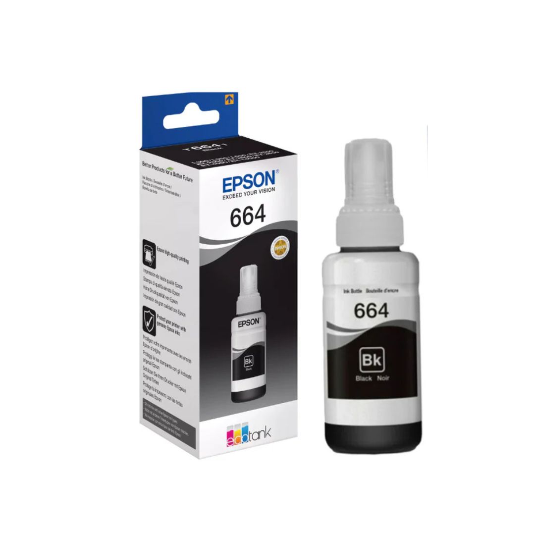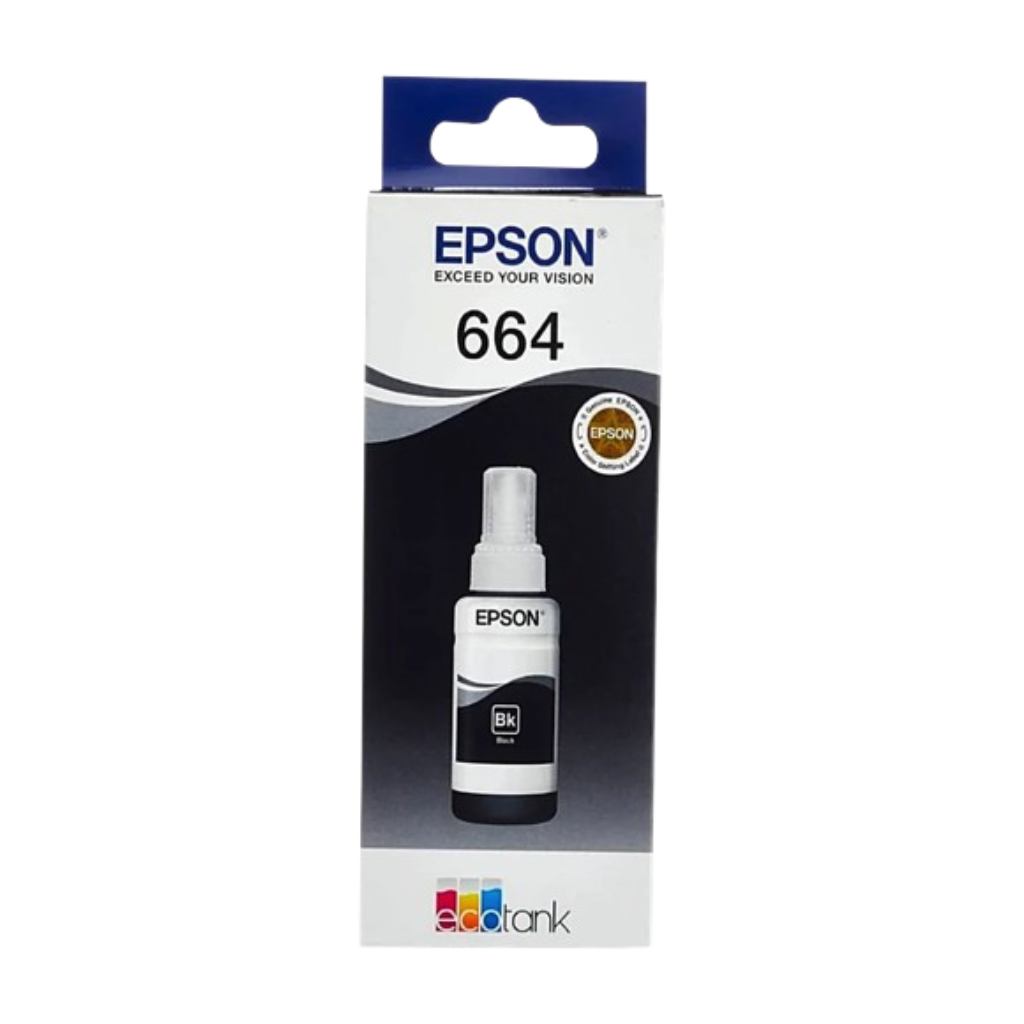 Epson 664 Black Ink Bottle makes sharp, clear writing and deep black tones, which are ideal for daily printing needs.