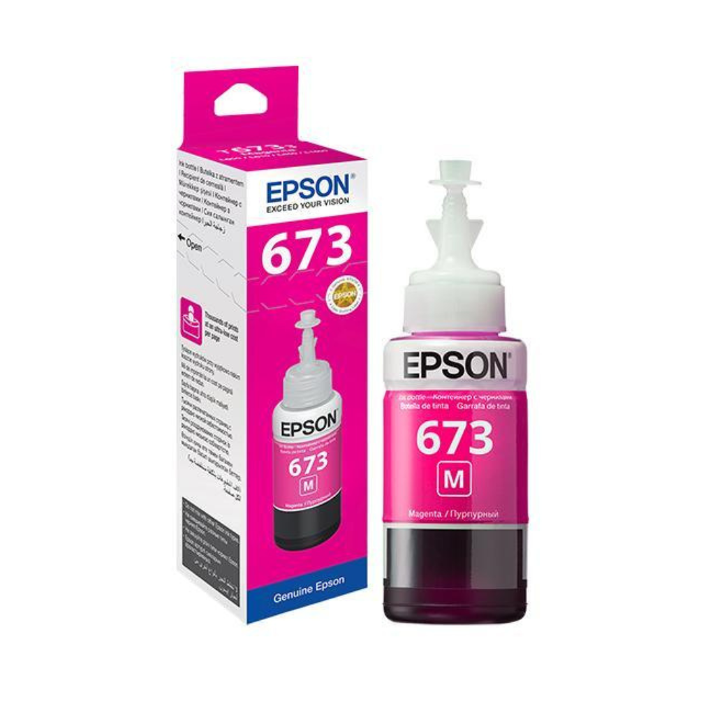 Epson 673 Magenta Ink Bottle – 6,000 Pages – For Epson L800, L805, L810The Epson 673 Magenta Ink Bottle delivers brilliant, true to life magenta tones for vibrant and professional quality prints. With an impressive yield of up to 6,000 pages, this genuine Epson ink ensures cost effective printing without compromising on quality. Specially formulated for Epson L800, L805, and L810 printers, it provides consistent color accuracy, smooth gradients, and fade resistant results. Perfect for photo printing, creative projects, and everyday documents, it keeps your printer performing at its best while producing stunning, long lasting prints.