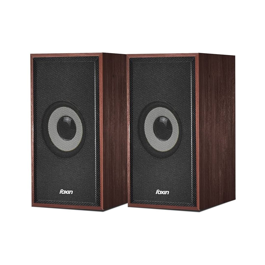 Foxin FMS 675 Plus 2.0 Multimedia Speakers/Volume Control Pod/Wooden Speakers/2.0 Channel/AUX Input 3.5mm Jack/For PC, Laptops