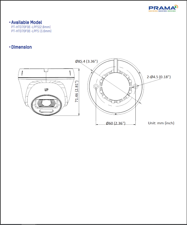 - Lens Options: Fixed focal lengths: 2.8 mm or 3.6 mm for versatile field of view options