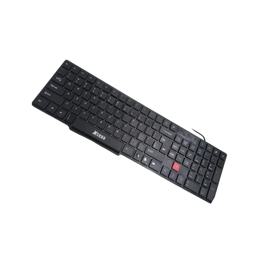 The Xcess USB keyboard is a reliable and durable keyboard designed for everyday computing needs. With easy USB connectivity, it offers a quick plug-and-play setup for desktops and laptops without any driver installation. Responsive keys ensure smooth typing performance, making it ideal for work, study, or casual use. Its sturdy construction and ergonomic layout provide lasting comfort during long typing sessions. The sleek black finish gives it a professional and modern look, making the Xcess USB keyboard a perfect choice for home, office or educational environments.