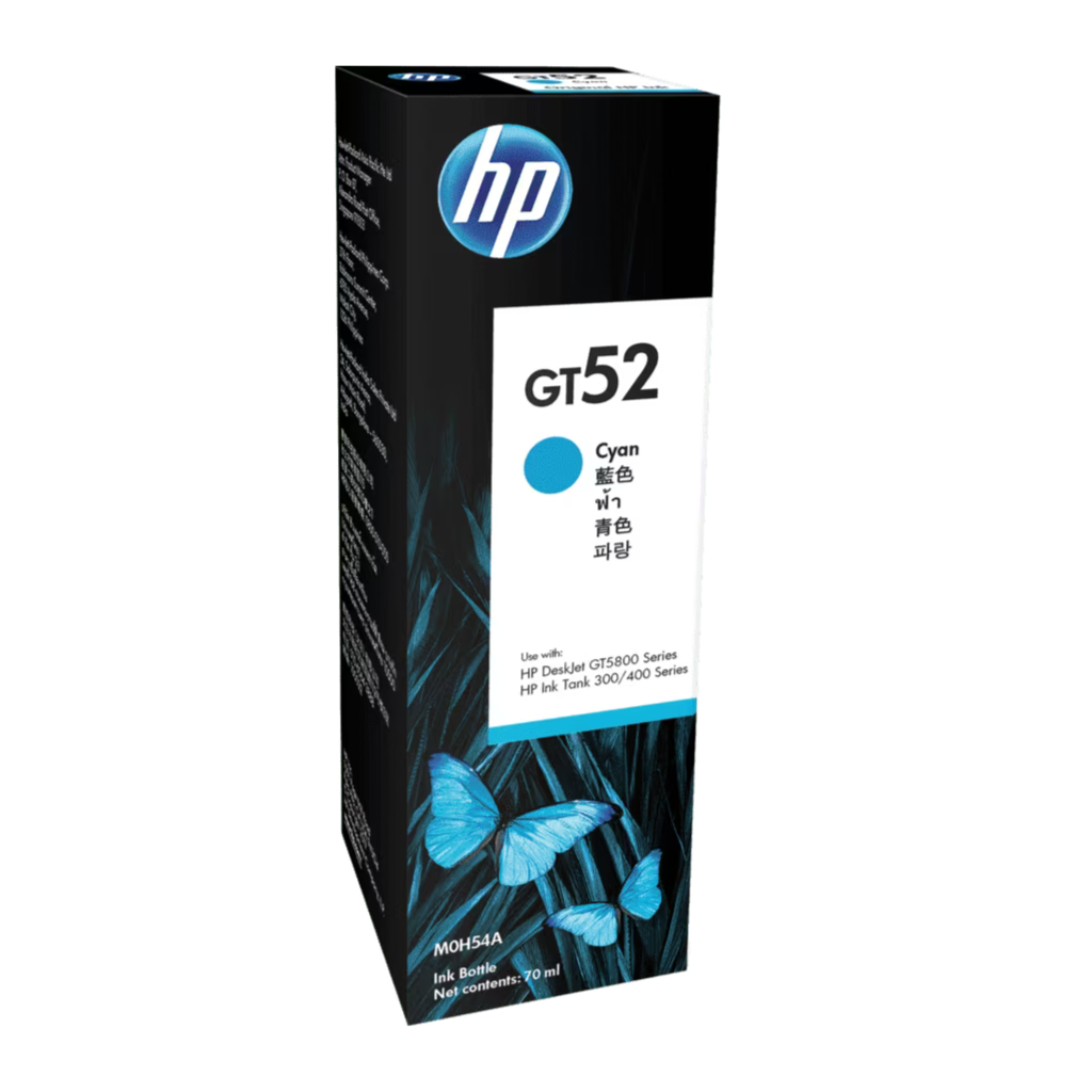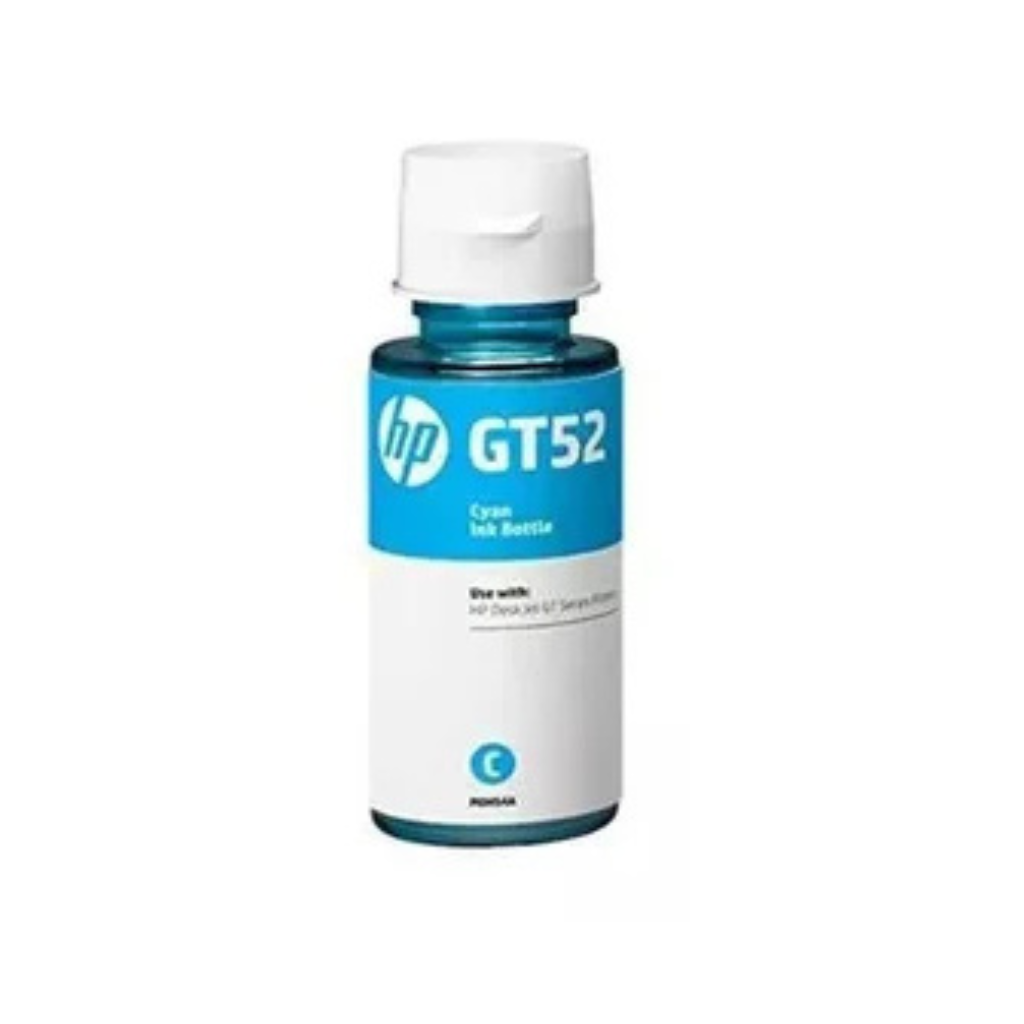HP GT52 Cyan Ink Bottle provides bright, vibrant blue tones for high quality color printingThe HP GT52 Cyan Ink Bottle delivers crisp, vibrant cyan tones for sharp and professional quality prints. With an impressive yield of up to 8,000 pages, this genuine HP ink ensures high volume printing at a low cost. Specially formulated for HP Ink Tank Series printers, it offers consistent color accuracy, smooth gradients, and fade resistant results. Perfect for photos, graphics, and everyday documents, it keeps your printer running efficiently while producing stunning, long lasting prints.