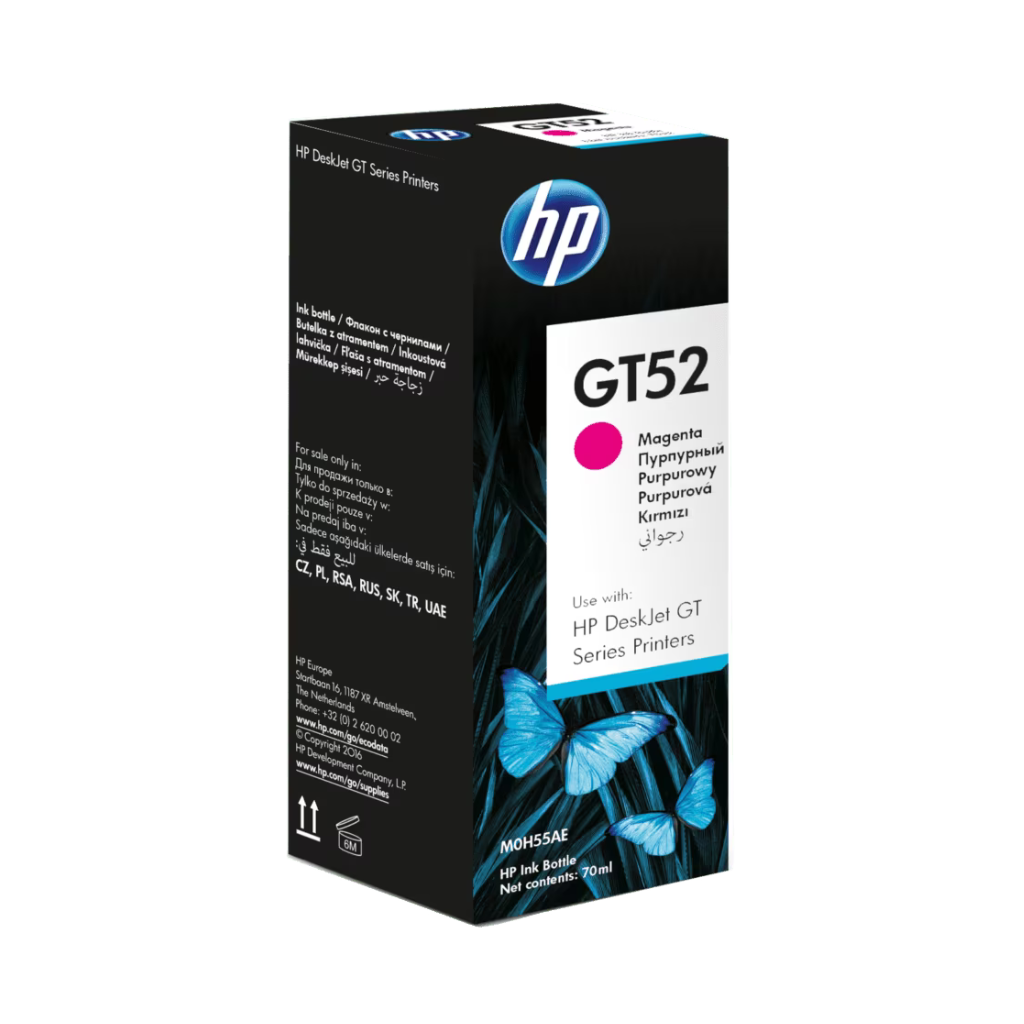 HP GT52 Magenta Ink Bottle offers rich, bold magenta shades for vibrant and sharp printsThe HP GT52 Magenta Ink Bottle delivers rich, vivid magenta shades for vibrant and professional quality prints. Designed for high volume printing, it offers an impressive yield of up to 8,000 pages, making it cost effective and reliable. Specially engineered for HP Ink Tank Series printers, this genuine HP ink ensures consistent color accuracy, smooth blending, and fade resistant results. Ideal for photos, creative projects, and everyday documents, it helps maintain peak printer performance while producing stunning, long lasting prints.