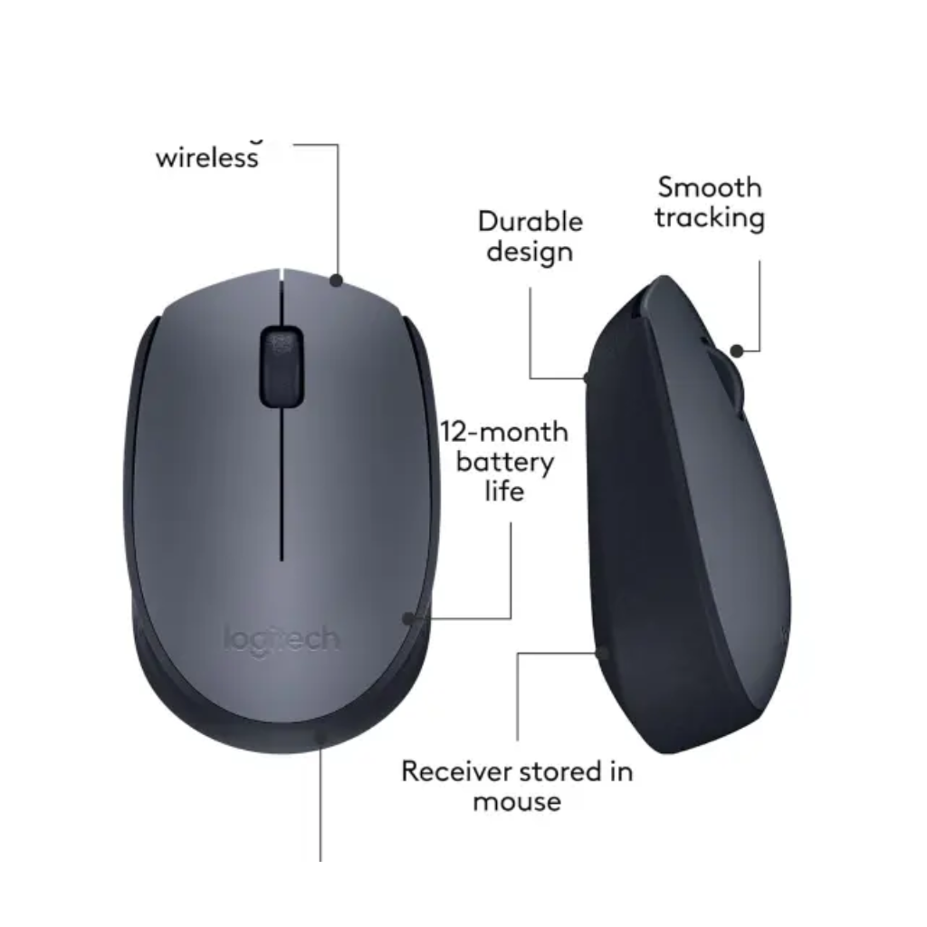 Logitech wireless M171 mouse is designed for PC, Mac and laptop users, which provides a reliable 2.4 GHz connection to the USB mini receiver. With a bipolar design and precise optical tracking, this mouse ensures smooth, responsive performance and comfortable use for both left and right handed users.