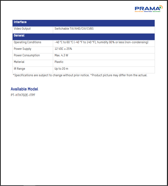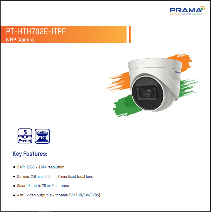 - Prama 5MP HD Dome Analog Camera PT-HTH702E-ITPF